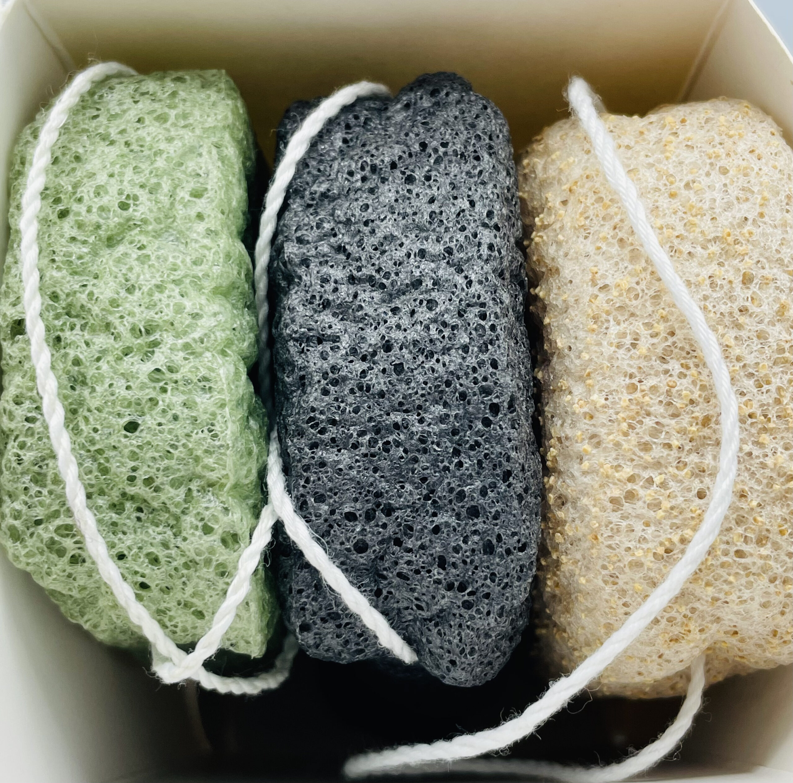 Konjac Luxury Body deep clean, anti-oxidant and exfoliating konjac sponge set has three konjac sponges included: