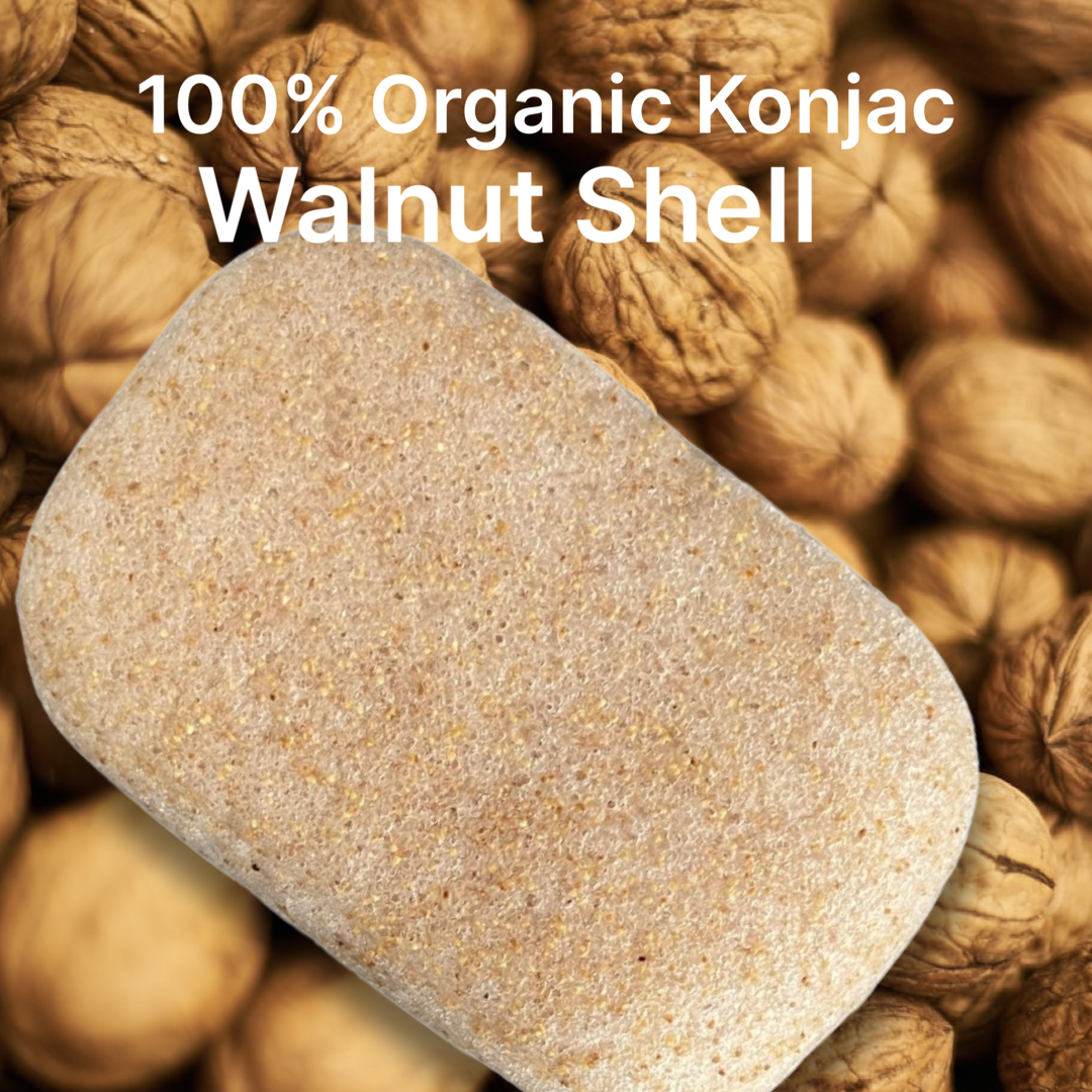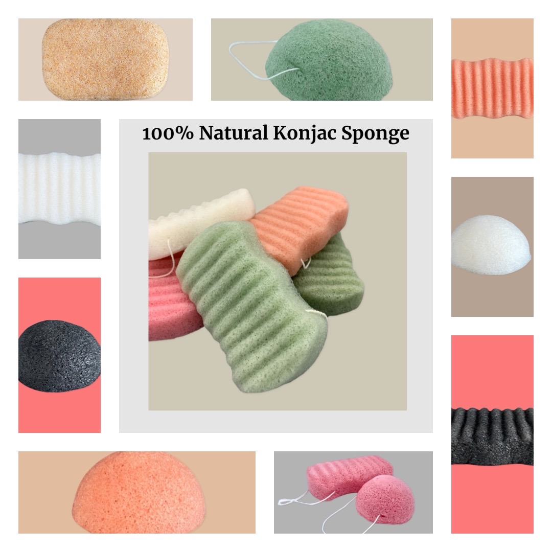 Konjac Body sponges are available in Charcoal Bamboo, Green Tea, Aloe Vera, French pink clay , natural,Rose and Walnut Shell